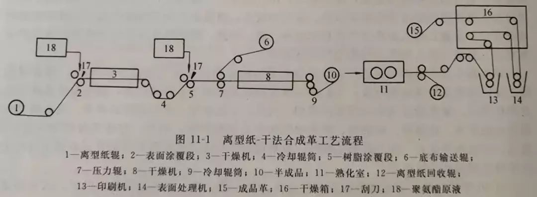 干法聚氨酯合成革生产的典型流程图示意如图11-1。