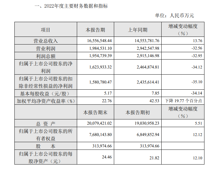 2月13日晚间,万华化学发布2022年度业绩快报公告。 公告表示,报告期内,受复杂的国际政治经济环境、多变的疫情形势、剧烈波动的全球能源价格、欧美经济体通胀等诸多因素影响,全球经济增速放缓。公司依托技术创新、卓越智造、全球运营优势,坚持客户导向,快速响应市场变化,实现全球业务增长。 同时,公司PO/SM装置、多套精细化学品装置陆续投产,实现公司整体产销量同比增加,营业收入同比增长,报告期内营业收入预计16,556,548.44万元,同比增长13.76%。但受全球大宗原料、能源价格同比大幅上涨影响,产品成本上涨幅度大于收入增长幅度,利润同比下降,归属于上市公司股东的净利润预计1,623,933.32万元,同比下降34.12%。 |