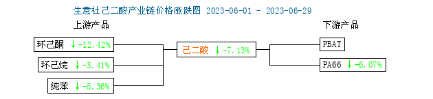 2023年6月,国内己二酸市场延续下跌态势,且跌幅加重,据生意社商品行情分析系统,截至6月29日,己二酸月跌幅在7.13%,市场交易重心明显下移。临近月底,己二酸市场报价区间在8900-9200元/吨,主因成本利空加剧及供需疲软。 产业链 上图显示,本月,己二酸产业链全线走跌。上下产业链产品均跌幅明显。尤其是上游原料跌幅最大,环己酮下跌超10%。下游PA66在5月份小幅反弹后,在市场缺乏利好指引下,重新回归下行通道,PA66月跌幅超5%。 成本面:纯苯、环己酮均下跌 上游纯苯延续5月跌势,较之上月超10%的跌幅,本月跌幅略有收窄。据专业研究机构行情分析系统,纯苯月跌幅达5.36%。原油震荡走低,对国内整个化工品市场形成利空打压,国内供应充裕,市场去库存效果不理想,叠加港口到货量大,纯苯市场流通量增加,华东纯苯价格持续走低。临近月末,华东纯苯价格在6000-6150元/吨区间。另一个上游产品环己酮,跌幅加剧,较之上月2%的跌幅,本月下跌超12%。总体看来,成本面利空居多。 供应面:装置复工较多 供应压力明显 市场供应来看:装置方面,本月己二酸整体开工率略有回升,从5月份的65%提升至近7成,主要生产厂家价格连续下调,山东大厂报价下调幅度超千元。厂家此前挺市效果不理想,出货遇阻,导致后期集中降价出货,但受需求偏弱影响。厂家出货速度放缓。目前供应端缺乏利好指引。 需求端:下游需求表现低迷 6月份,己二酸下游需求表现清淡。下游工厂拿货谨慎,订单无放量,保证正常开机需求。以PA66为例,据监测,本月PA66跌幅为6.07%,市场仍在底部徘徊,上月受装置检修影响,价格小幅反弹,但本月供应量提升,终端采购不旺,PA66重归下行通道,跌幅明显。时值月末,浙江地区PA66市场价格在19000-19700元/吨上下。 后市展望 关于后市,有己二酸分析师认为,成本面,原油受美联储加息未结束的鹰派预期影响,燃料需求受压制。成本面缺乏利好指引,纯苯和环己酮也陷入僵持格局,价格料仍有下滑空间。供需两端或继续保持弱平衡,低开工和低需求继续博弈。总的来看,预计短期内己二酸弱势运行为主。 |