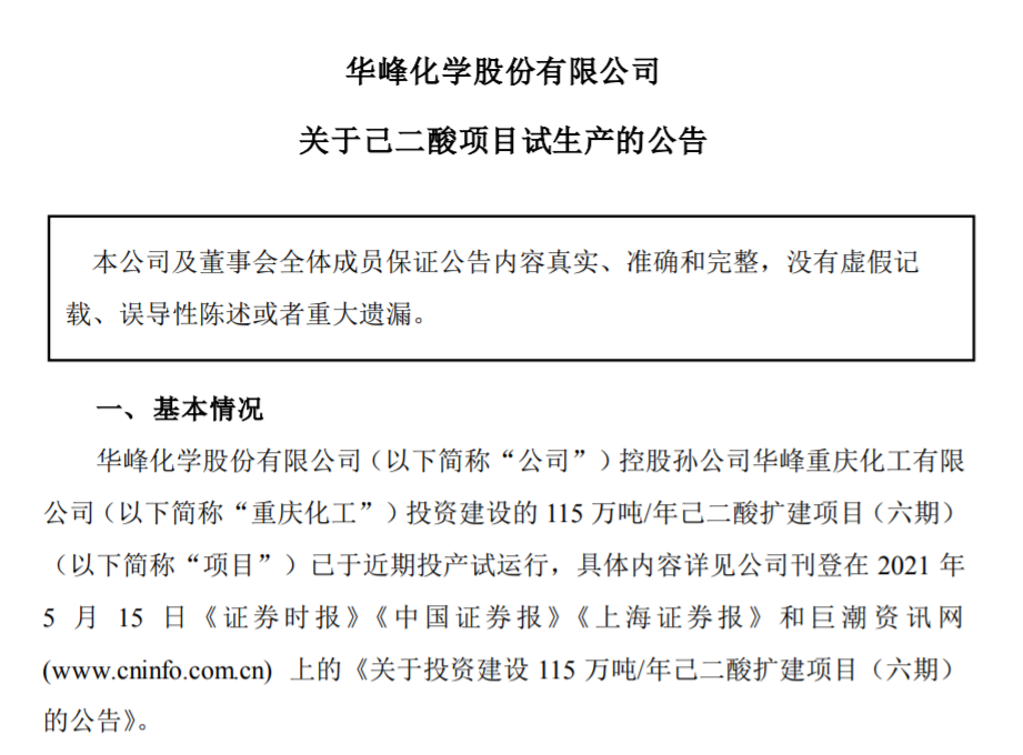 9月12日,华峰化学股份有限公司发布关于己二酸项目试生产的公告。 据悉,6月12日,重庆华峰化工有限公司115万吨/年己二酸扩建项目(六期50万吨/年)一次性开车成功,标志着国内已建设最大规模己二酸生产项目正式运营。 该六期项目于2022年8月正式开工,历时10个月,于2023年5月14日成功出料。重庆华峰化工有限公司115万吨/年己二酸扩建项目(六期)己二酸装置安装工程项目位于重庆市涪陵区白涛化工园区绿色石化基地华峰工业园,拥有全球单套规模最大的己二酸装置。该项目采用国内领先的生产工艺“环己烯法”生产己二酸,该项工艺属于国内先进生产技术,具有低能耗、低排放、低污染、循环经济的优势。 2010年6月,华峰集团在白涛新材料科技城“落户”,十三年来,重庆华峰新材料产业园从无到有,从小到大,先后有重庆华峰化工、华峰重庆氨纶、华峰铝业、重庆华峰新材料、重庆华峰聚酰胺、重庆华峰锦纶等六大实体公司相继成立,并连续启动了二十期项目,完成了十六期建设。园区现已建成全球最大己二酸生产企业和全球最大单体氨纶生产车间。 目前,除了建成的115万吨/年己二酸装置,华峰在白涛新材料科技城的产业园还建成年产20万吨环己酮、16万吨差别化氨纶、20万吨聚氨酯树脂、20万吨铝热传输复合材料、5万吨尼龙66切片等生产能力,系全球最大的己二酸生产企业和全球单体最大的氨纶生产基地,还率先攻克己二腈技术,填补国内空白。 2022年6月29日,重庆华峰30万吨/年己二腈项目(三期)、30万吨/年尼龙66一体化项目(二期)竣工,30万吨/年尼龙66一体化项目(三期)同日开工。30万吨/年己二腈项目三期投产后,重庆华峰将具备年产20万吨己二腈和20万吨己二胺生产能力。 |