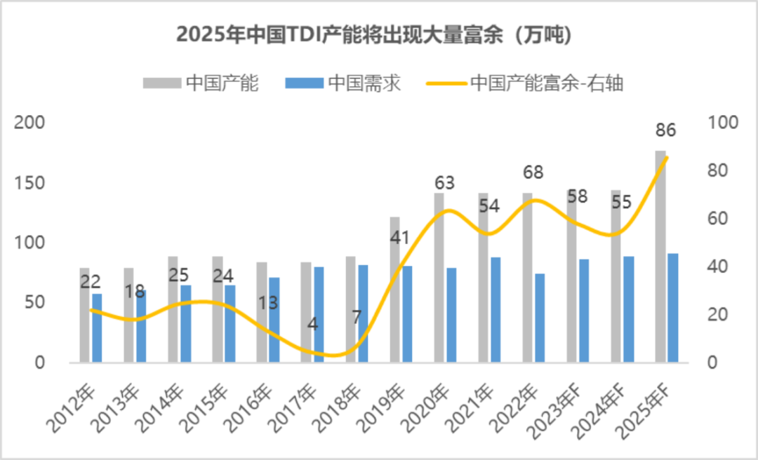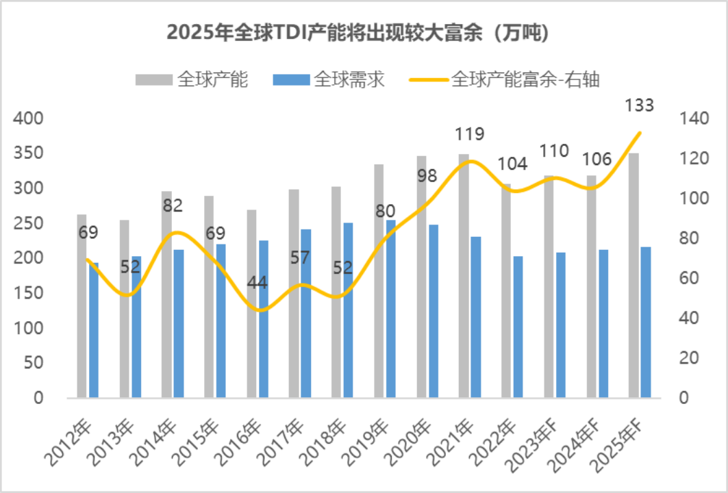 近期,万华化学在2023年沪市公司高质量发展路演活动中回答投资者关于公司聚氨酯领域的最新情况。路演中万华披露公司TDI产能及发展规划,万华介绍到“公司除了烟台TDI装置、欧洲BC装置外,过去三年时间收购整合了福建东南电化、巨力等TDI业务,通过技术改造和装置投资,目前全球TDI产能95万吨,已经成为全球规模最大的TDI供应商。 今年上半年万华福建工业园25万吨TDI装置投产,开车即满产,TDI产品纯度99.99%,达到世界领先水平。公司单套TDI装置产能30万吨,单套装置投资成本低、运营效率高,生产成本具有绝对领先优势。因此,万华福建工业园将再新建一套33万吨TDI装置,至2025年,整体TDI产能规模将超过128万吨,持续扩大领先优势。” 由此可见,万华聚氨酯板块未来的发展方向仍将是继续做大做强,持续提升竞争力。在目前全球现有TDI装置的“老”、“旧”、“小”的现状下,万华新装置带来的行业冲击势必引发产能替代,TDI全球竞争格局或将重塑。 产能优势打造成本优势,各家实力差距正逐渐拉大 全球TDI市场自上世纪50年代以来,长期掌握在欧美、日韩等跨国公司手里,近年来伴随万华烟台、福建TDI装置投产及法国Vencorex、日本东曹、德国巴斯夫等装置的关停,万华化学已经开始全面超越巴斯夫和科思创,成为全球第一的TDI生产商。 规模化效益带来更具竞争力的原材料成本与加工成本,到目前为止,全球单套产能可以实现30万吨/年的只有万华化学和科思创这两家,其中万华化学装置投资成本优势明显,凭借上下游一体化的产业链优势,其成本竞争力远远超过其他厂家。其他供应商包括日本、韩国以及国产厂家的TDI装置单套产能一般都是5-10万吨/年,装置小而分散,缺少规模化生产效益。我们认为万华在TDI及聚氨酯板块未来的成长路径也会围绕持续降低制造成本来继续扩大市场份额。 技术水平决定产品水平,在全球TDI市场竞争中起到关键作用 TDI是聚氨酯工业中最主要的原料之一,主要用于生产聚氨酯软泡、涂料固化剂、弹性体、胶粘剂等产品。该行业是一个技术密集型和资本密集型行业,由于装置投资大、生产技术复杂、进入门槛高,全球真正掌握核心生产技术的只有巴斯夫、科思创、万华化学等少数企业。 据万华披露,公司TDI产品纯度可以达到99.99%,超过竞争对手,达到全球领先水平。同时,万华也是唯一一家配套聚醚产业链的TDI生产商,通过相关产品配套,产品协同优势明显。 新增产能扩张下,未来TDI供需天平将持续倾斜,市场竞争将更加激烈 在俄乌冲突、欧洲能源危机、全球疫情反复,欧美地区高通胀、美联储强势加息等多重因素的影响下,2022年全球经济增速急剧回落至3.4%,中国GDP增速下滑至3%。TDI主要下游应用如床垫、沙发、座椅等受此影响,全球TDI需求量出现明显下滑,2022年全球TDI需求减少至202万吨,同比下降12%,2022年中国TDI需求量减少至74万吨,同比下降16%。 有分析认为,未来随着人口增速放缓,TDI下游行业增长将趋于缓和。按照历史增速推测,2025年全球TDI需求量预计217万吨,其中中国TDI需求量预计91万吨,而全球TDI产能富余量将增加到133万吨,国内TDI产能富余量将增加到86万吨,全球和中国的TDI产能都将出现供远大于求的局面。在此预期下,2025年全球TDI装置开工率将下降至62%左右,接近15年以来的最低水平,历史市场参考价格长期徘徊在11500-13500元/吨,低开工率导致的高运营成本加之较低的产品价格,不少厂家出现了运营艰难的情况。 未来新增产能扩张下,TDI供过于求局面将进一步加剧,市场竞争将更加激烈,不具备成本竞争力与技术竞争力的厂家将再一次面临运营风险。 |