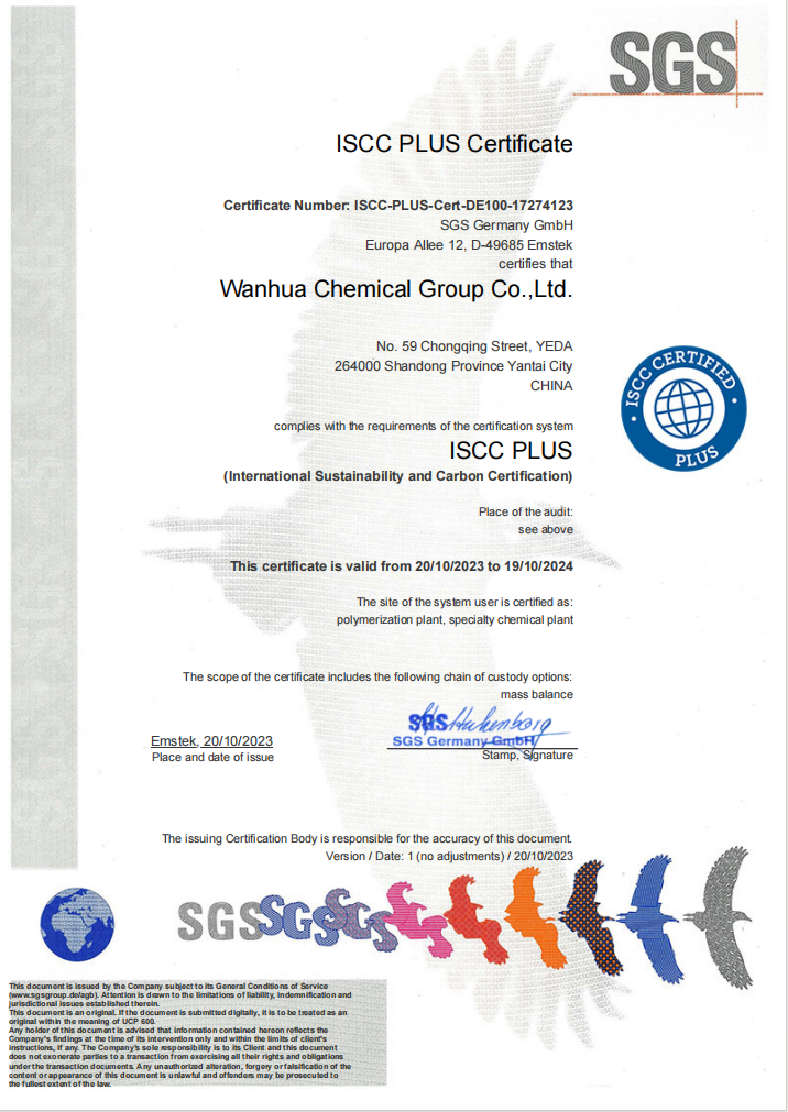 近日,万华化学MDI、TDI、IPDI、PMMA、TPU和生物基聚醚六款产品获得国际可持续发展和碳认证(ISCC PLUS),这意味着公司已具备向客户供应含可再生、可循环原料产品的能力,作为践行可持续发展的又一实践,将进一步支持众多下游行业的绿色低碳发展。 万华化学选择了质量平衡(Mass Balance)的方法对ISCC PLUS认证的产品和物料进行统筹管理,基于可持续信用额度的分配,打破了物理隔离的限制,使跟踪价值链中循环和或生物基材料的数量和可持续性特性成为可能,确保产品在生产过程中保持高质量,同时降低不必要的资源浪费和环境影响。 这一认证说明产品具备可持续生产流程,确保产品生命周期的最小环境影响,是我们为环境和社会做出贡献的一项重要贡献。万华化学将继续加大在可持续生产的投入,使用可持续原材料来生产并供应低碳足迹产品,推动提升行业价值链的可持续发展。未来,万华化学将通过积极布局实现更多产品的ISCC PLUS认证,坚守“化学,让生活更美好”的可持续发展战略总体愿景。致力于通过化学的力量,在推动自身变革的同时,为人类面临的共同挑战提供解决方案,助力可持续发展未来。 万华化学的ISCC PLUS认证产品包括: MDI(二苯基甲烷二异氰酸酯),它是制造聚氨酯合成革、鞋底原液、氨纶、TPU等产品的重要原材料;TDI(甲苯二异氰酸酯),主要用于生产聚氨酯泡沫,常用于沙发、床垫和汽车座椅等,还可用于涂料固化剂;IPDI(异佛尔酮二异氰酸酯),广泛应用于弹性体、胶黏剂、水性聚氨酯树脂、UV树脂和油墨树脂;PMMA(聚甲基丙烯酸甲酯),常见于透明塑料制品,如导光板、汽车灯罩、眼镜镜片和装饰材料;TPU(热塑性聚氨酯弹性体),广泛用于制造弹性塑料制品,包括鞋材、热熔胶膜、薄膜、电子、汽车和线缆等领域;生物基聚醚,主要用于生产聚氨酯软质泡沫材料,广泛用于家居、汽车、鞋材和内衣等领域。 据悉,ISCC (International Sustainability and Carbon Certification)国际可持续性与碳认证——是一种认证体系,专注于验证可持续性和碳排放减少的产品,尤其是生物质和化工原材料。ISSCC PLUS(ISCC+)则是针对整个供应链上下游的认证体系,加强了环保和社会责任标准,为更高级别的可持续性认证提供了框架。 |