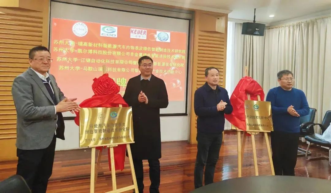 1月30日,苏州大学-瑞高新材料新能源汽车内饰表皮绿色智能制造技术研究院、苏州大学-马鞍山瑞高科技有限公司智能检测产业技术创新中心,在苏州大学天赐庄校区红楼顺利举行集体揭牌仪式。 出席本次会议的政府嘉宾有:苏州市工业和信息化局四级调研员徐国良,苏州市工业和信息化局装备处副处长张晨烨、太仓市璜泾镇党委副书记陈利锋;苏州大学校/院级领导有:苏州大学党委常委、副校长李孝峰,苏州大学产业技术研究院常务副院长糜志雄,苏州大学机电工程学院党委书记刘鲁庆等。合作企业苏州瑞高新材料股份有限公司董事长高金岗,苏州凯尔博科技股份有限公司总经理邵煜东,苏州江锦自动化科技有限公司总经理黄冬梅,苏州江锦自动化科技先进技术研究院院长李宏等出席了揭牌仪式。 会议由苏州大学机电工程学院副院长王传洋教授全程主持。苏州瑞高董事长高金岗表示,企业的快速发展,促使对各类技术人才的需求不断增加。此次与苏州大学的合作计划为公司搭建了人才培养“直通车",对瑞高的发展具有十分深远的影响意义,瑞高也期待这次合作做实、做强、做大,实现学校、企业双方共赢,为苏州经济做出应有的贡献。 李孝峰副校长对苏州瑞高新材料等高新技术企业与苏大的进一步深度合作表示了热烈欢迎,高度肯定了苏大机电学院在产学研领域的发展成就以及对提升学校科研成果在苏州转化落地成功率的巨大贡献。并指出此次校企创新联合体正是对时代发展的积极响应,是提升智能制造装备与技术核心竞争力的重要举措。鼓励双方依托平台优势,开展智能制造装备的理论研究和实践创新,积极推动高端装备人才的培养和交流,推进智能装备产业数字化转型、智能化升级,共同探索智能装备发展的新动力和新方向。 刘鲁庆书记表示此次校企创新联合体的顺利揭牌将标志着与会企业与机电学院的合作迈上了新台阶,为智能制造装备产业的发展注入了新的活力。以王传洋教授领衔的先进制造与智能装备研究团队,与苏州瑞高新材料开展科研项目合作、人才培养和技术交流等,也为高端装备产业的发展贡献更多的力量。 徐国良调研员希望此次苏大与企业的校企创新联合体创立,推进了智能装备领域各类资源共享共用,形成产学研合作基础研究-技术创新-产业发展的一体化产业链,为苏州智能制造装备产业的新发展提供有力的智力支持。苏州市工业和信息化局也将继续给予校企产学研合作大力支持,提高产学研合作深度和广度。力求打造“国家急需、世界一流”的智能装备技术体系,协同解决高端智能装备技术“卡脖子”问题。 会上,苏州大学副校长李孝峰、苏州大学产业技术研究院常务副院长糜志雄、璜泾镇党委副书记陈利锋和瑞高新材料董事长高金岗共同为新成立的技术研究院和产业技术创新中心揭牌。 |