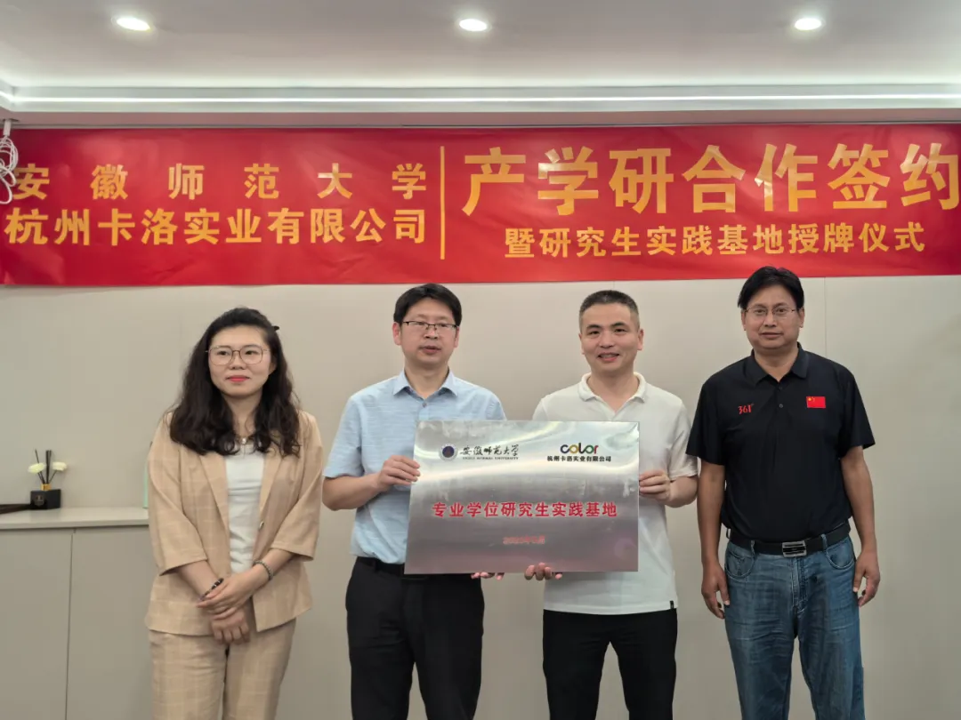5月13日下午,杭州卡洛实业有限公司与安徽师范大学产学研合作签约暨研究生实践基地授牌仪式在卡洛实业公司一楼会议室举行。安徽师范大学教授、博士生导师、教育部重点实验室主任商永嘉,安徽师范大学副教授何心伟,安徽师范大学研究生院专业学位办主任于珊珊,安徽师范大学教育部重点实验室行政秘书信欣,浙江省建德市大同镇党委副书记、镇长黄光辉,大同镇党委、分管人才副书记翁玲,公司董事长李泽恩,总经理李少海,副总经理温小祥、黄锭鸿,基础研发部经理简善忠博士,人力行政部经理肖娜,总经理助理戚童共同出席,参加签约仪式。 董事长李泽恩首先对安徽师范大学各位老师、政府领导一行的到来表示欢迎。他表示此次与安徽师范大学合作,源于我们对“产学研深度融合”战略的坚定信念,更源于双方优势的高度契合: “一方面,安徽师范大学在化学与材料科学领域ESI全球排名前1%,实力雄厚,特别是在高分子新型材料方面与公司的产业需求高度匹配。 另一方面,我们深知,企业的持续发展离不开人才支撑。通过共建研究生实践基地,我们期待为高校学子提供产业实践平台,同时也希望借助安徽师范大学的智力资源,攻克行业技术瓶颈,推动科研成果向生产力转化,实现‘育人’与‘兴业’的双赢。” 大同镇党委副书记、镇长黄光辉对此次企业与校方的合作表示热烈祝贺,高度评价了公司对大同镇经济发展的突出贡献,同时也肯定了安徽师范大学在科研领域的成就。黄镇长提到,希望双方的合作能产生更多优秀成果,助力卡洛进军高端领域,大同政府也将全力做好人才服务工作,为合作的顺利推进保驾护航。 安徽师范大学教授商永嘉在会上详细介绍了学校的科研方向。他表示,此次合作将围绕技术研发、人才培养、博士生工作站建设等多个方面展开。学校将与公司携手进行关键技术攻关,培养专业学位的硕士生和博士生,还会聘请公司的技术高管担任兼职导师,促进双方人才的交流与成长。 在与会嘉宾的共同见证下,双方代表郑重签署了合作协议,随后还举行了授牌仪式。 这不仅是双方合作的起点,更是教育与产业深度融合的生动实践。此次公司与安徽师范大学的合作,是产学研协同创新的一次大胆尝试。相信在双方的共同努力下,必将为合成革行业带来新的突破,书写更加辉煌的篇章!